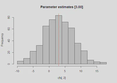 hist(cfs[,2], main = 'Parameter estimates [3.00]')