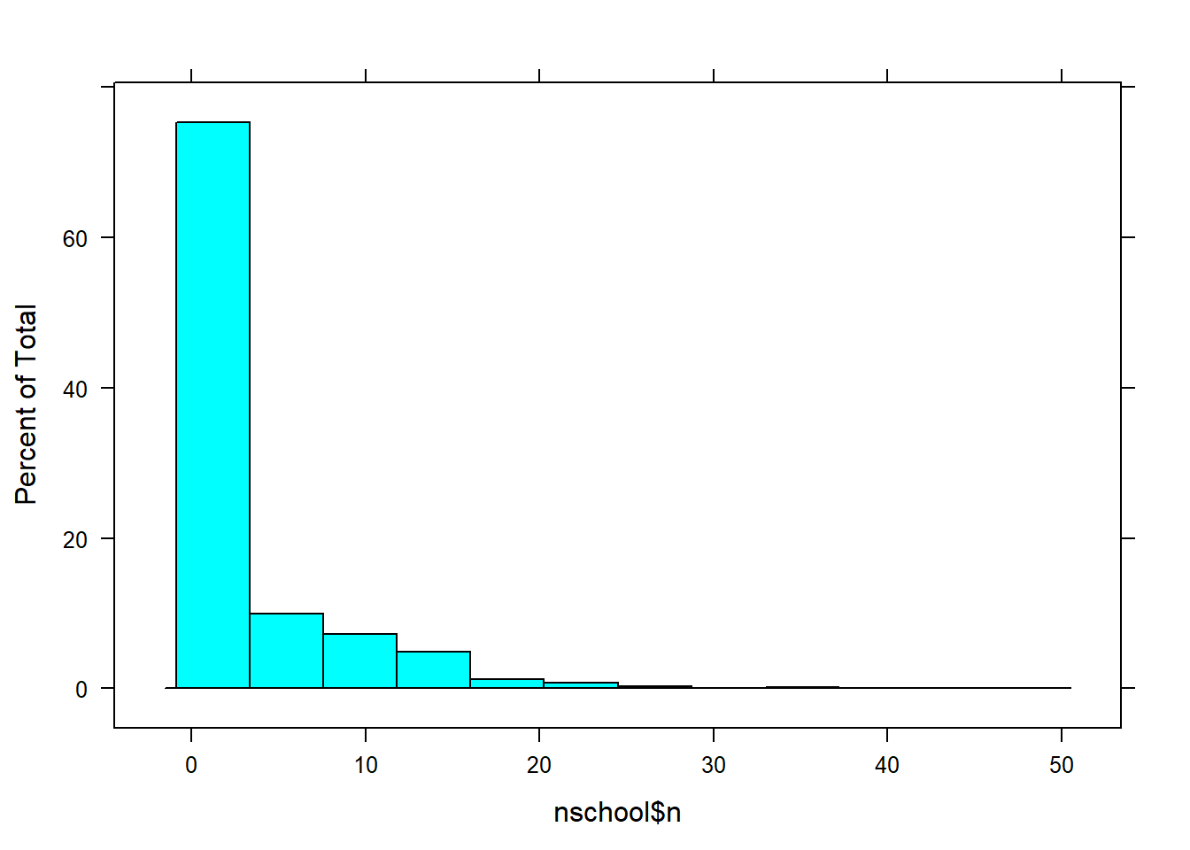lattice::histogram(nschool$n) #1591 schools originally